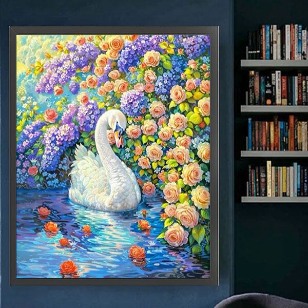 準上級 フル ダイヤモンドアート キット ビーズ刺繍 白鳥 湖 花畑 紫陽花 バラ モザイクアート パズルアート リハビリ 趣味 絵画 カラービーズ