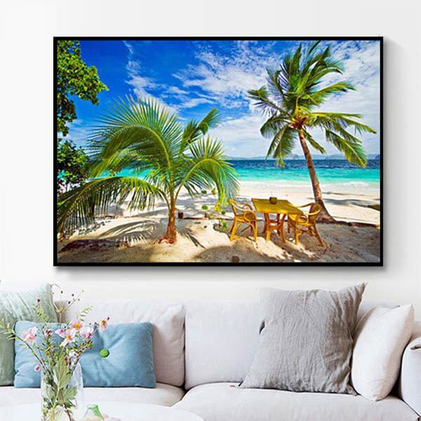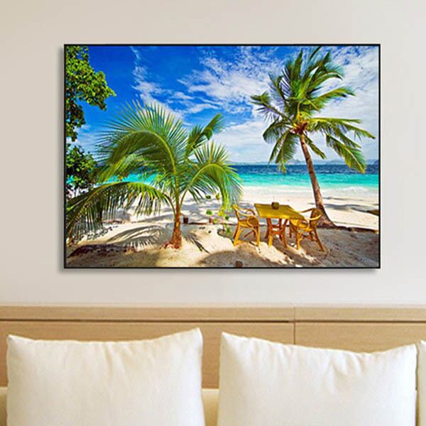 中級 フル ダイヤモンドアート キット ビーズ刺繍 ヤシの木 ビーチ モザイクアート パズルアート リハビリ 趣味 絵画 カラービーズ ハンドメイド