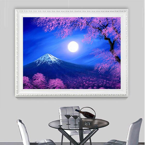 中級 フル ダイヤモンドアート キット ビーズ刺繍 富士山 夜桜 満月 モザイクアート パズルアート リハビリ 趣味 絵画 カラービーズ ハンドメイド