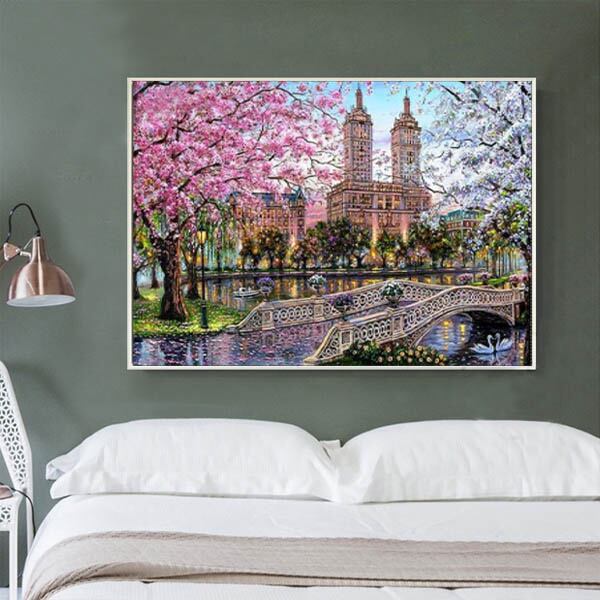 中級 フル ダイヤモンドアート キット ビーズ刺繍 桜 春のイギリス ビッグベン モザイクアート パズルアート リハビリ 趣味 絵画 カラービーズ ハンドメイド
