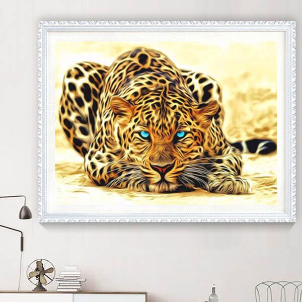 中級 フル ダイヤモンドアート キット ビーズ刺繍 豹 レオパード アニマル 青い目 モザイクアート パズルアート リハビリ 趣味 絵画 カラービーズ ハンドメイド