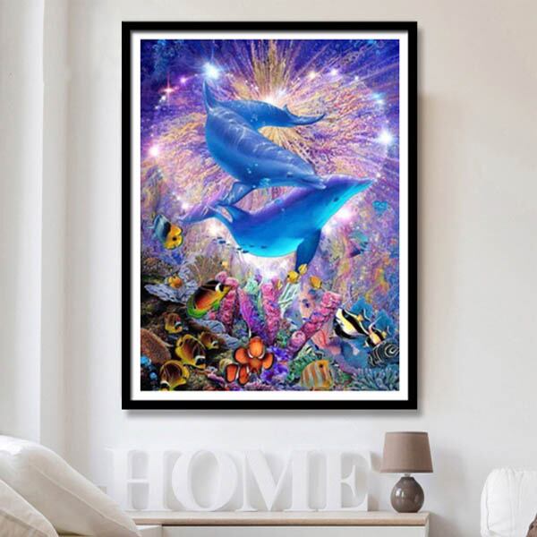 中級 フル ダイヤモンドアート キット ビーズ刺繍 イルカ 幻想的 海底 魚 珊瑚礁 モザイクアート パズルアート リハビリ 趣味 絵画 カラービーズ ハンドメイド
