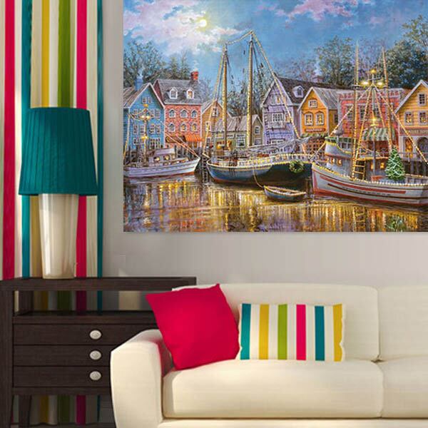 中級 フル ダイヤモンドアート キット ビーズ刺繍 ヨットハーバー クリスマス 風景画 夕暮れ モザイクアート リハビリ 趣味 絵画 カラービーズ ハンドメイド