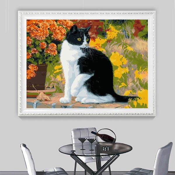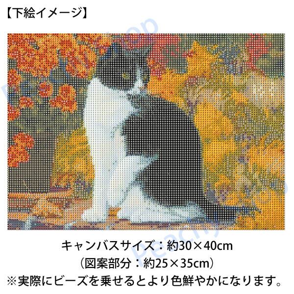 中級 フル ダイヤモンドアート キット ビーズ刺繍 白黒猫 秋の庭 キャット モザイクアート リハビリ 趣味 絵画 カラービーズ ハンドメイド