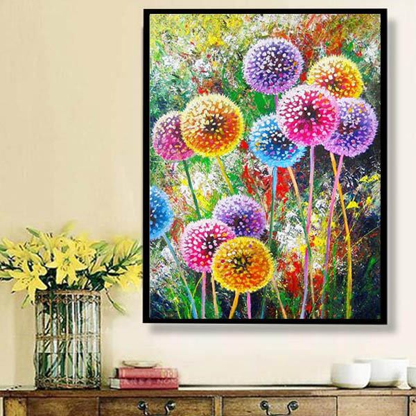 中級 フル ダイヤモンドアート キット ビーズ刺繍 カラフルたんぽぽ わたぼうし 蒲公英 モザイクアート リハビリ 趣味 絵画 カラービーズ ハンドメイド