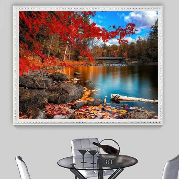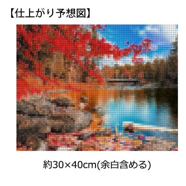 中級 フル ダイヤモンドアート キット ビーズ刺繍 紅葉 秋空 湖畔 モザイクアート リハビリ 趣味 絵画 カラービーズ ハンドメイド