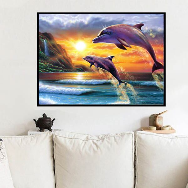 中級 フル ダイヤモンドアート キット イルカ 夕日 サンセット 海 モザイクアート リハビリ 趣味 絵画 カラービーズ ハンドメイド
