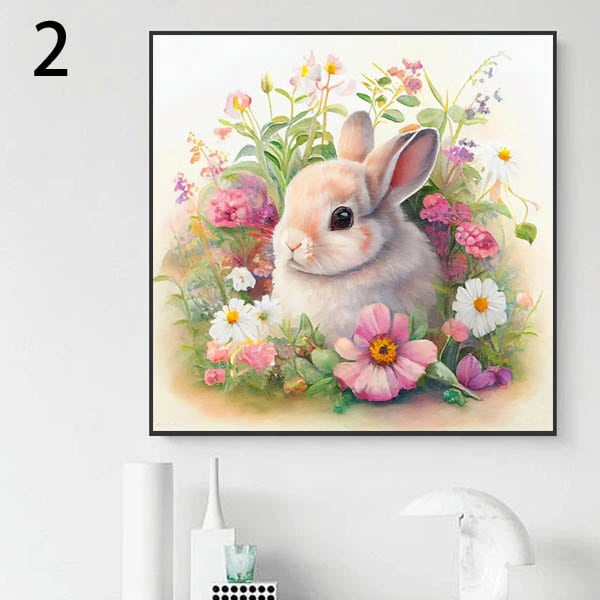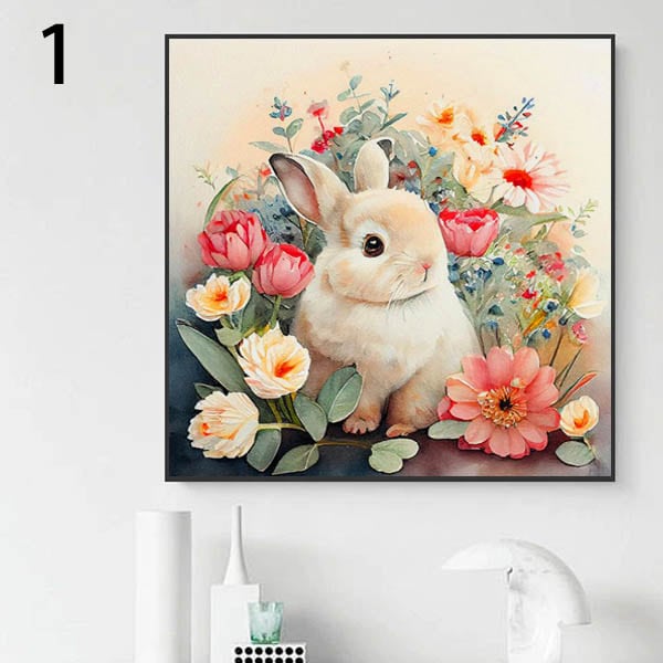 初級 フル ダイヤモンドアート キット ビーズ刺繍 花と子うさぎ 花畑 うさぎ モザイクアート リハビリ 趣味 絵画 カラービーズ ハンドメイド