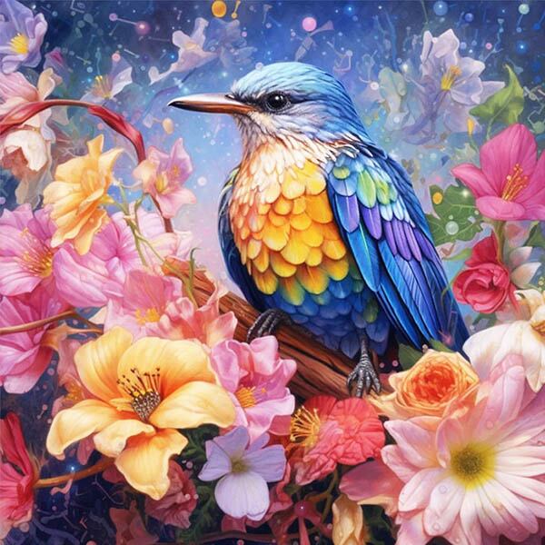 初級 フル ダイヤモンドアート キット ビーズ刺繍 花畑 ハチドリ カラフル モザイクアート リハビリ 趣味 絵画 カラービーズ ハンドメイド