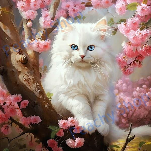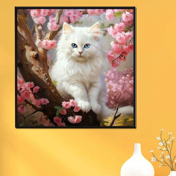 初級 フル ダイヤモンドアート キット ビーズ刺繍 白猫 桜 桃の花 モザイクアート リハビリ 趣味 絵画 カラービーズ ハンドメイド