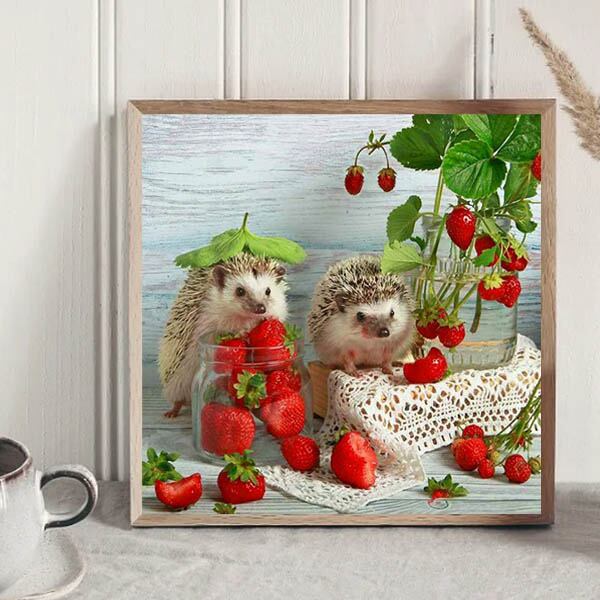 初級 フル ダイヤモンドアート キット ビーズ刺繍 ハリネズミ イチゴ 小動物 モザイクアート リハビリ 趣味 絵画 カラービーズ ハンドメイド