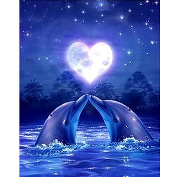 中級 フル ダイヤモンドアート キット ビーズ刺繍 イルカ 海上 ハート 夜の海 モザイクアート リハビリ 趣味 絵画 カラービーズ ハンドメイド