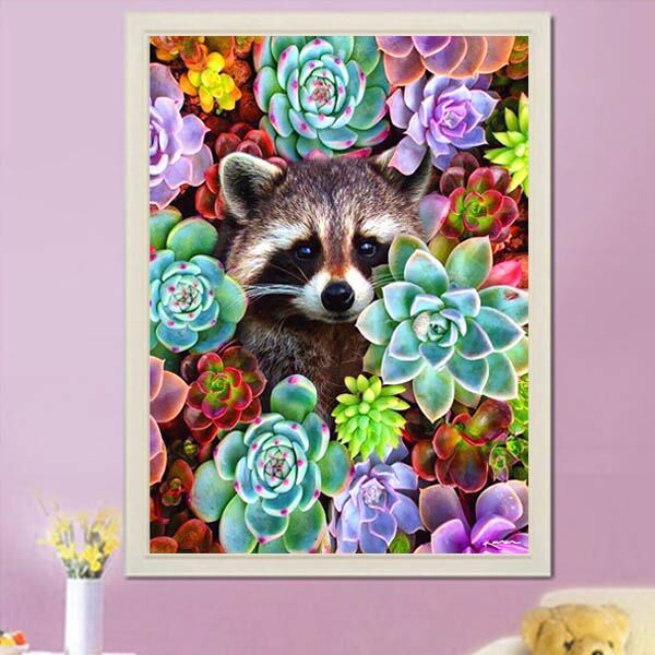 中級 フル ダイヤモンドアート キット ビーズ刺繍 多肉植物 アライグマ 小動物 エケベリア モザイクアート リハビリ 趣味 絵画 カラービーズ ハンドメイド