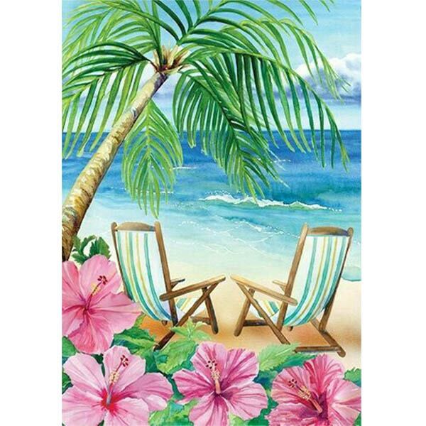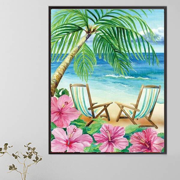 中級 フル ダイヤモンドアート キット ビーズ刺繍 海辺 ハイビスカス サンチェア ビーチ モザイクアート リハビリ 趣味 絵画 カラービーズ ハンドメイド