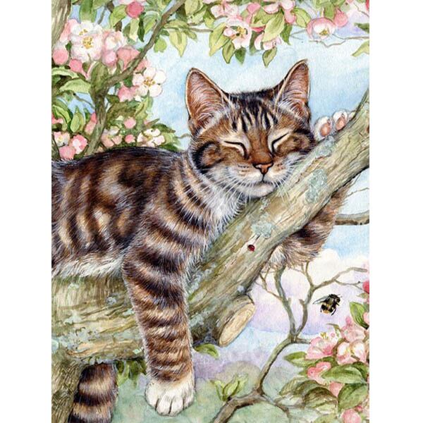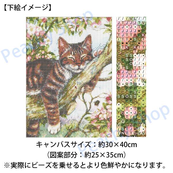 中級 フル ダイヤモンドアート キット ビーズ刺繍 猫 キジトラ 桜の木 昼寝 モザイクアート リハビリ 趣味 絵画 カラービーズ ハンドメイド