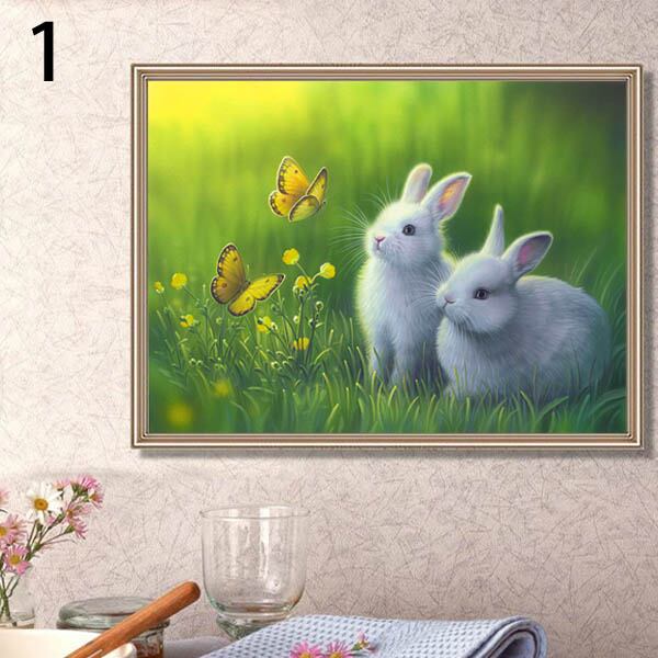 中級 フル ダイヤモンドアート キット ビーズ刺繍 兔 うさぎ 幻想的 草原 雪 モザイクアート リハビリ 趣味 絵画 カラービーズ ハンドメイド