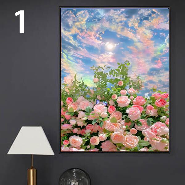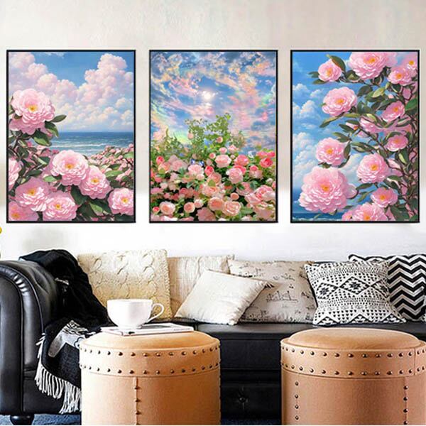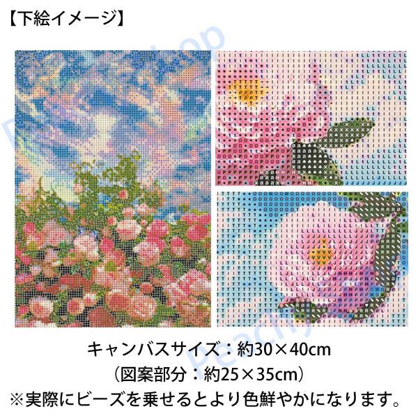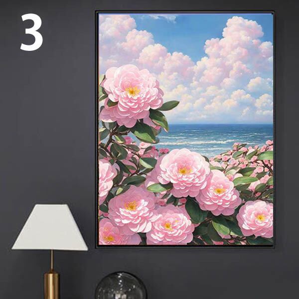 中級 フル ダイヤモンドアート キット ビーズ刺繍 椿 カメリア 青い空とピンクの花 モザイクアート リハビリ 趣味 絵画 カラービーズ ハンドメイド