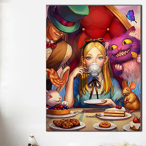 中級 フル ダイヤモンドアート キット ビーズ刺繍 アリス 不思議な国 ワンダーランド お茶会 モザイクアート リハビリ 趣味 絵画 カラービーズ ハンドメイド