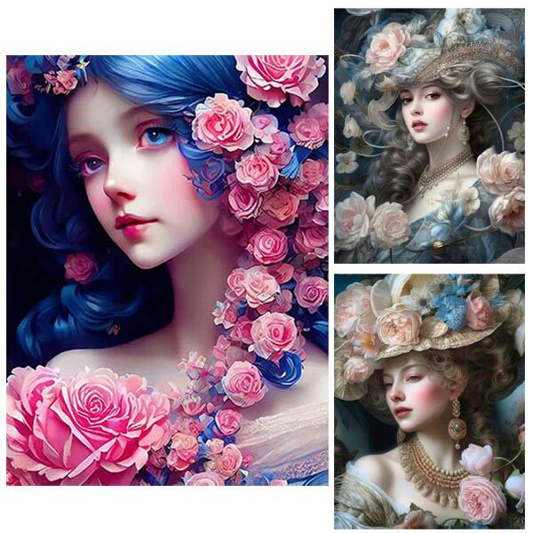 中級 フル ダイヤモンドアート キット ビーズ刺繍 薔薇 貴婦人 帽子をかぶった女性 モザイクアート リハビリ 趣味 絵画 カラービーズ ハンドメイド