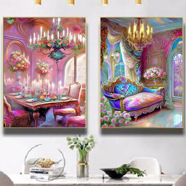 中級 フル ダイヤモンドアート キット ビーズ刺繍 ロココ調 部屋 フランス シャンデリア モザイクアート リハビリ 趣味 絵画 カラービーズ ハンドメイド