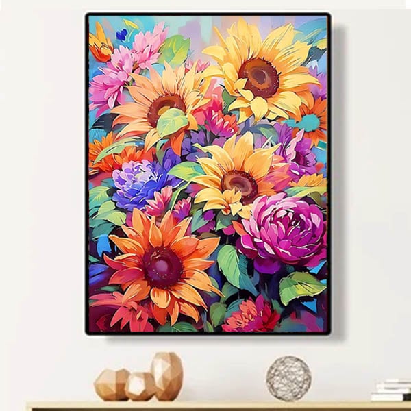中級 フル ダイヤモンドアート キット ビーズ刺繍 ポップカラー ひまわり 向日葵 モザイクアート リハビリ 趣味 絵画 カラービーズ ハンドメイド
