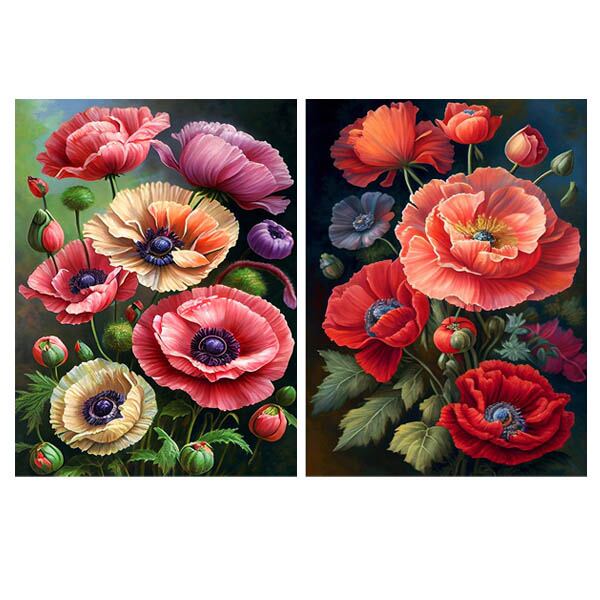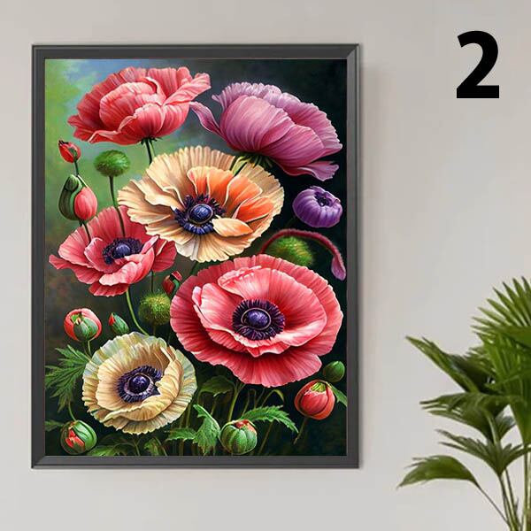 中級 フル ダイヤモンドアート キット ビーズ刺繍 ポピー 花 ヒナゲシ モザイクアート リハビリ 趣味 絵画 カラービーズ ハンドメイド