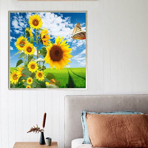 準上級 フル ダイヤモンドアート キット ビーズ刺繍 ひまわり 向日葵 青空 田園風景 蝶 モザイクアート パズルアート リハビリ 趣味 絵画