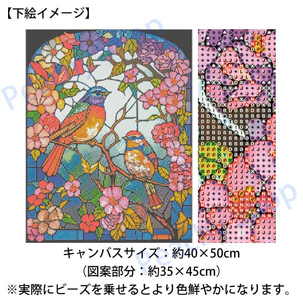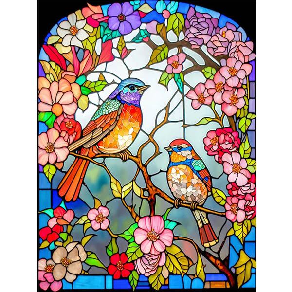 準上級 フル ダイヤモンドアート キット ビーズ刺繍 ステンドグラス 小鳥と花 カラフル モザイクアート パズルアート リハビリ 趣味 絵画