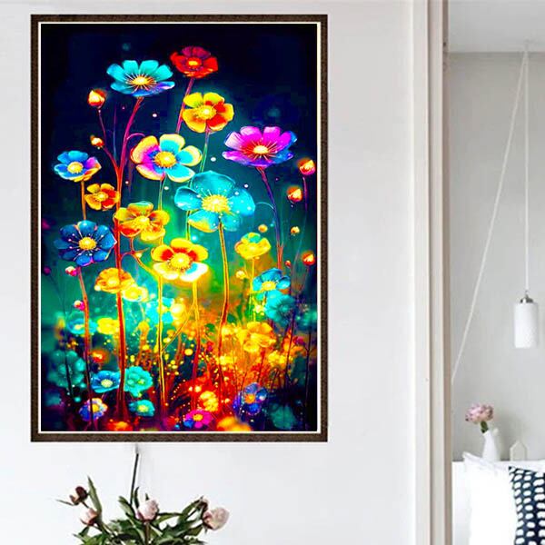 上級 フル ダイヤモンドアート キット ビーズ刺繍 幻想的 フラワー ネオン 花 モザイクアート パズルアート リハビリ 趣味 絵画 カラービーズ ハンドメイド