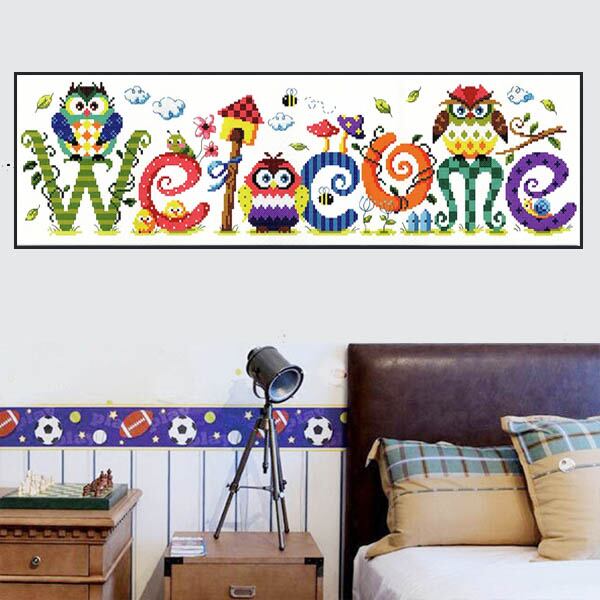 大型サイズ 上級者向け フル ダイヤモンドアート キット ビーズ刺繍 ウェルカム ふくろう フクロウ カラフル モザイクアート パズルアート リハビリ