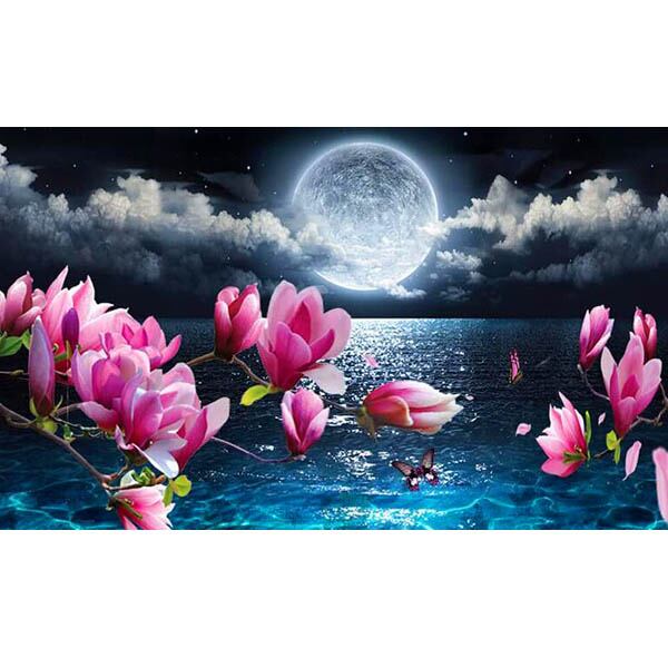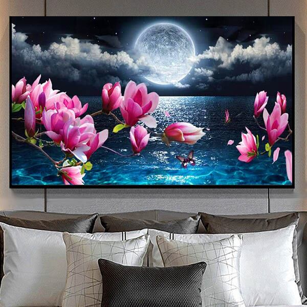 大型サイズ 上級者向け フル ダイヤモンドアート キット ビーズ刺繍 満月 モクレン 木蓮の花 月夜 モザイクアート パズルアート リハビリ