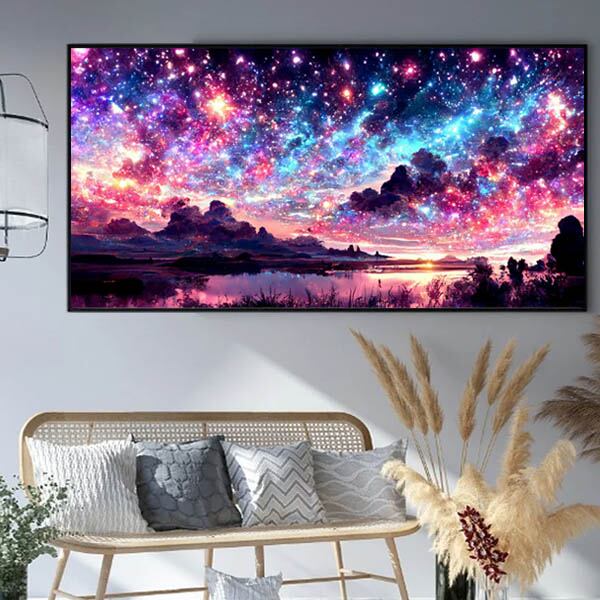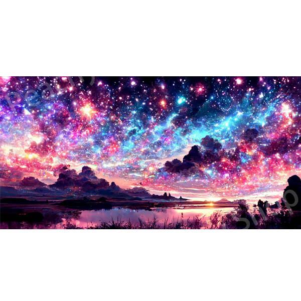 大型サイズ 上級者向け フル ダイヤモンドアート キット ビーズ刺繍 天の川 湖 ピンクの空 モザイクアート パズルアート リハビリ