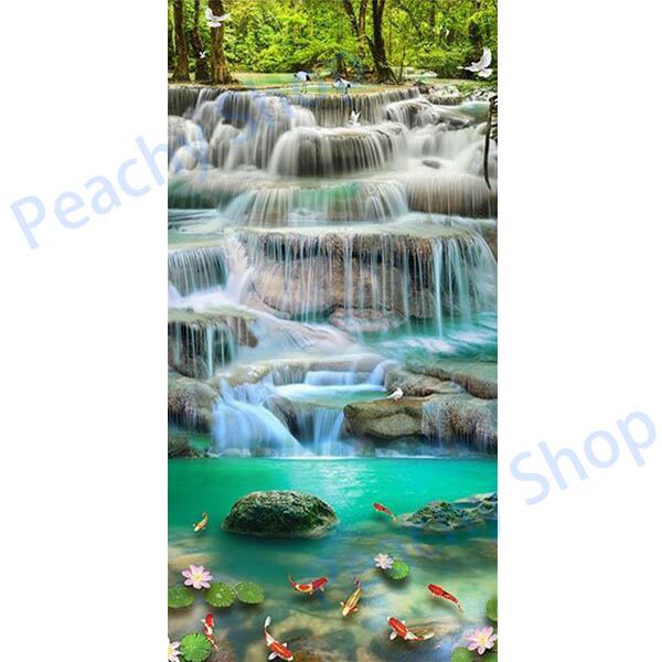 大型サイズ 上級者向け フル ダイヤモンドアート キット ビーズ刺繍 滝 森の湖 アジア風 鯉 モザイクアート パズルアート リハビリ