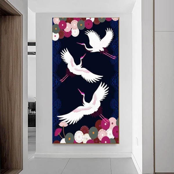 和テイストな羽を広げて飛ぶ鶴と菊模様のデザインです。