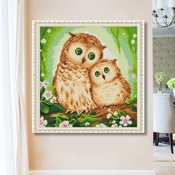 初級 フル ダイヤモンドアート キット ビーズ刺繍 ふくろう 親子 森 モザイクアート パズルアート リハビリ 趣味 絵画 カラービーズ ハンドメイド