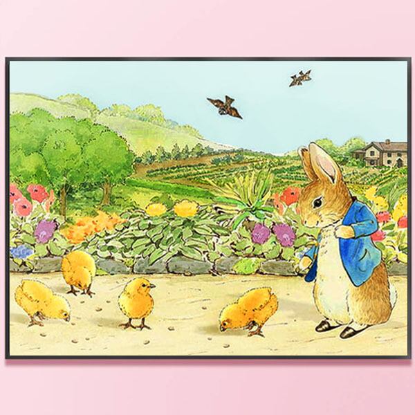 中級 フル ダイヤモンドアート キット ビーズ刺繍 ピーターラビット ひよこ 畑 モザイクアート リハビリ 趣味 絵画 カラービーズ