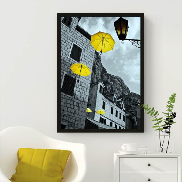 3枚セット 33×43cm アートパネル 枠付きフレーム絵画 モノクロ ロンドン 街中 差し色 イエロー タウン風景 壁掛け アートポスター インテリア絵画