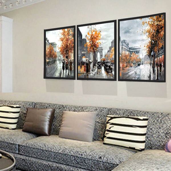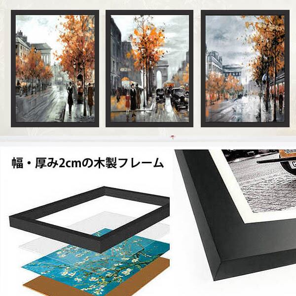 3枚セット 33×43cm アートパネル 枠付きフレーム絵画 雨のロンドン ノスタルジー 油絵風 壁掛け アートポスター インテリア絵画
