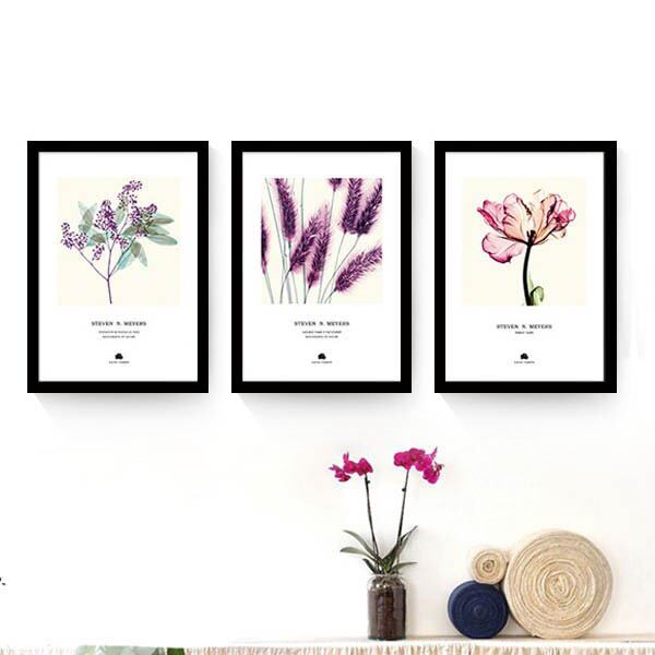 3枚セット 33×43cm アートパネル 枠付きフレーム絵画 植物 ボタニカル 紫色 水彩画風 カラフル 抽象画 壁掛け アートポスター インテリア絵画
