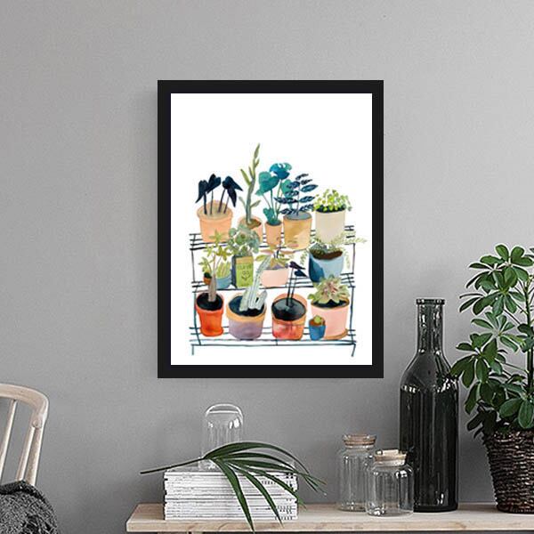 3枚セット 33×43cm アートパネル 枠付きフレーム絵画 水彩画風 ガーデン 観葉植物 壁掛け アートポスター インテリア絵画