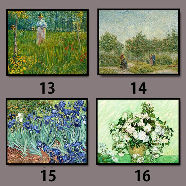 単品 33×43cm アートパネル 枠付きフレーム絵画 ゴッホ 世界名画 星月夜 アイリス 麦畑 風景画 壁掛け インテリア絵画 ウォールデコ