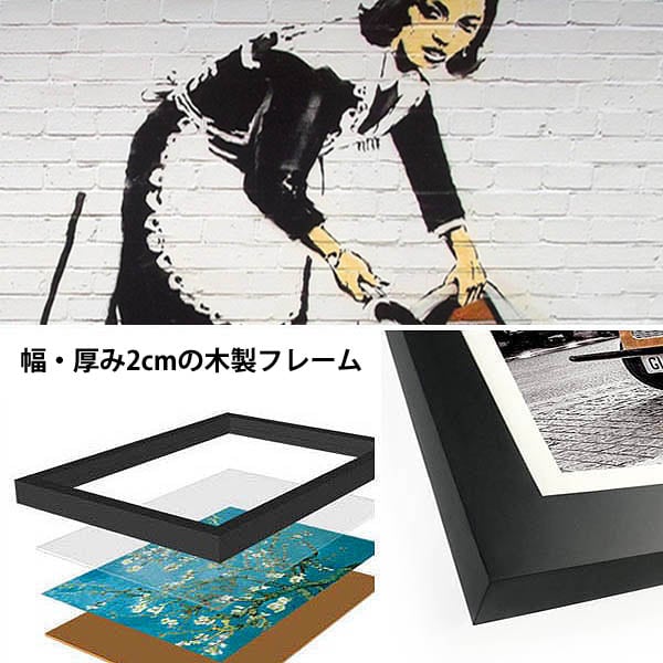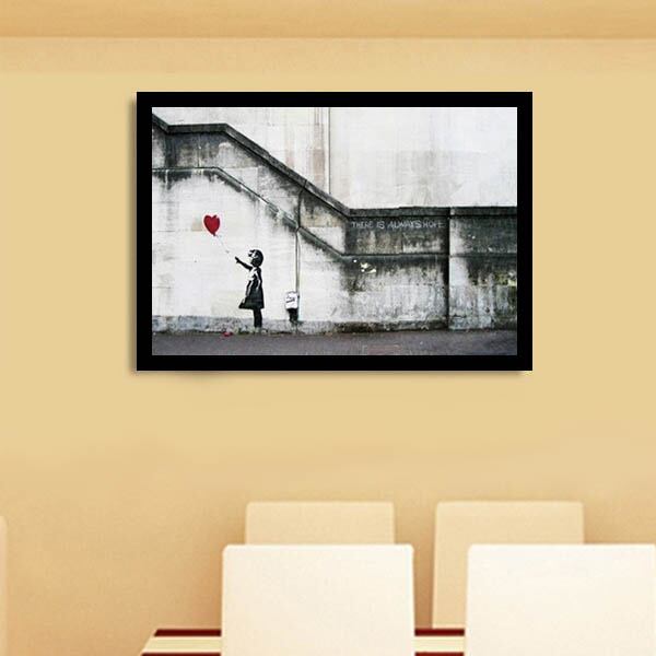単品 33×43cm アートパネル 枠付きフレーム絵画 バンクシー メイド 風船と少女 ガスマスク ストリートアート 壁掛け インテリア絵画 ウォールデコ
