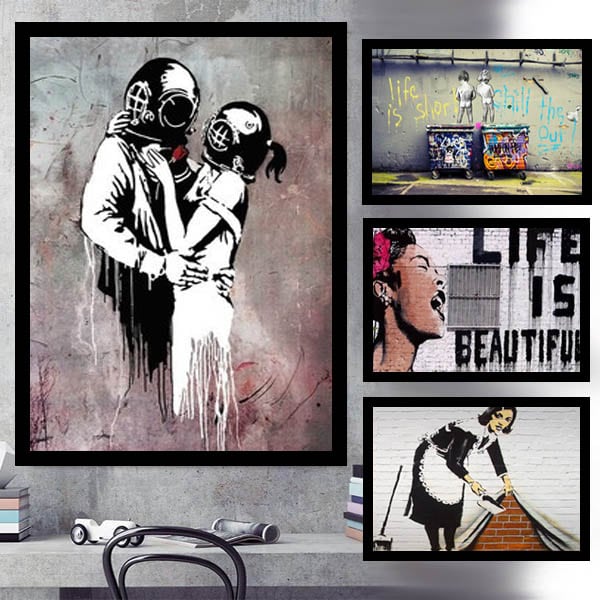 覆面ストリートアーティスト・バンクシーの名画です。