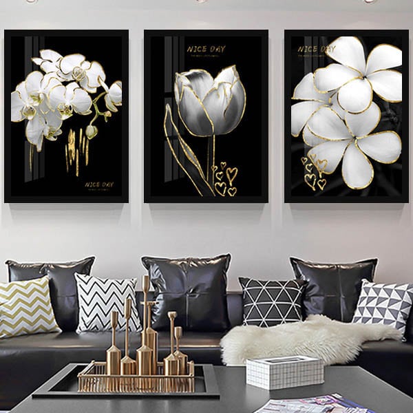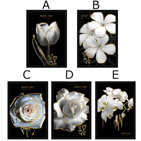 単品 33×43cm アートパネル 枠付きフレーム絵画 プルメリア バラ ローズ 胡蝶蘭 モノクロ 金縁 壁掛け インテリア絵画 ウォールデコ