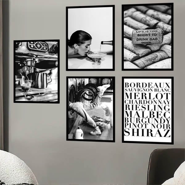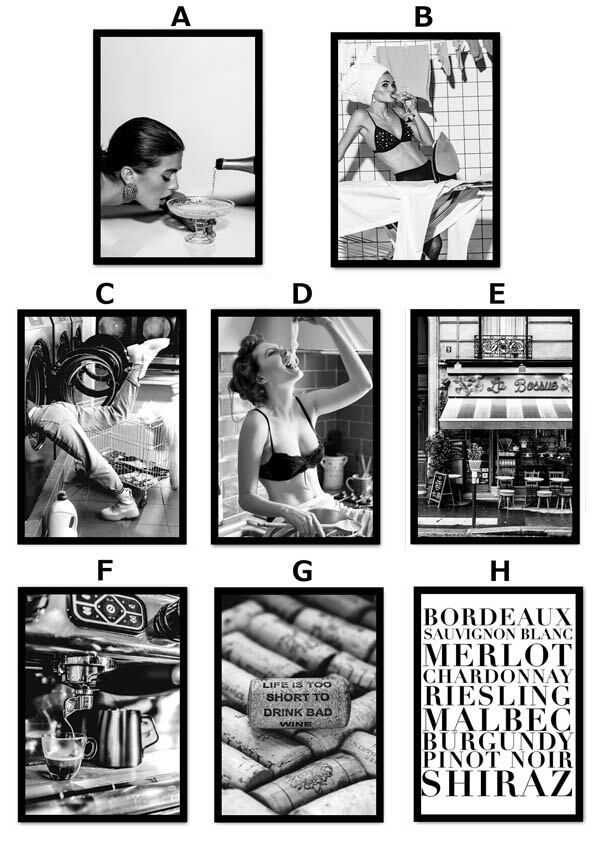 単品 33×43cm アートパネル 枠付きフレーム絵画 モノクロ 美女 シャンパン ワイン イタリアカフェ アートポスター 壁掛け インテリア絵画 ウォールデコ