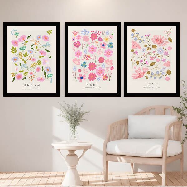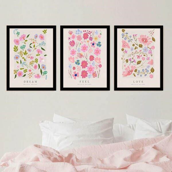 単品 33×43cm アートパネル 枠付きフレーム絵画 花モチーフ シームレスフラワー パターン アートポスター 壁掛け インテリア絵画 ウォールデコ