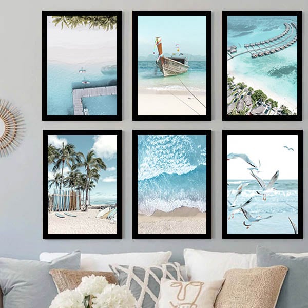 単品 33×43cm アートパネル 枠付きフレーム絵画 海 ボード カモメ 南国の島 アートポスター 壁掛け インテリア絵画 ウォールデコ