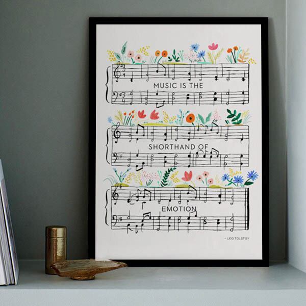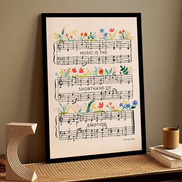 単品 33×43cm アートパネル 枠付きフレーム絵画 楽譜 音符 ポップ ボタニカル ミュージック アートポスター 壁掛け インテリア絵画 ウォールデコ