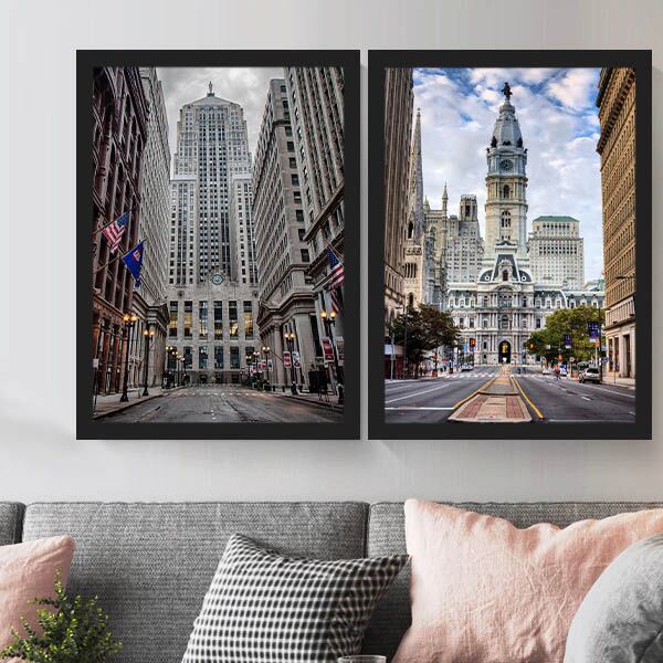 単品 33×43cm アートパネル 枠付きフレーム絵画 世界名所 ビル 大都会 スペイン アメリカ アートポスター 壁掛け インテリア絵画 ウォールデコ